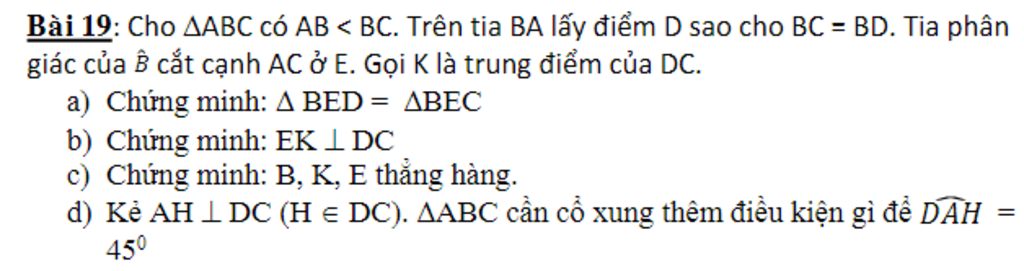 c, ta có tam giác BCD cân tại B nên BK vừa là đường cao vừa là trung tuyến