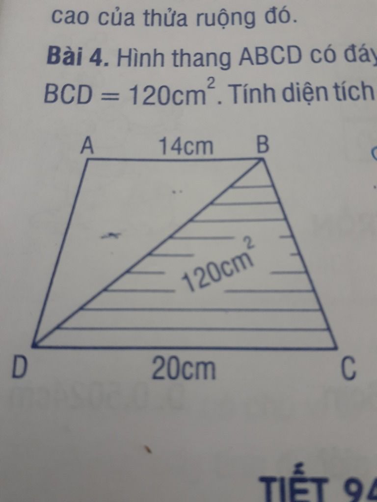 vậy chiều cao của tam giác BCD là : h = 120 : 1/2 :20 = 12 cm