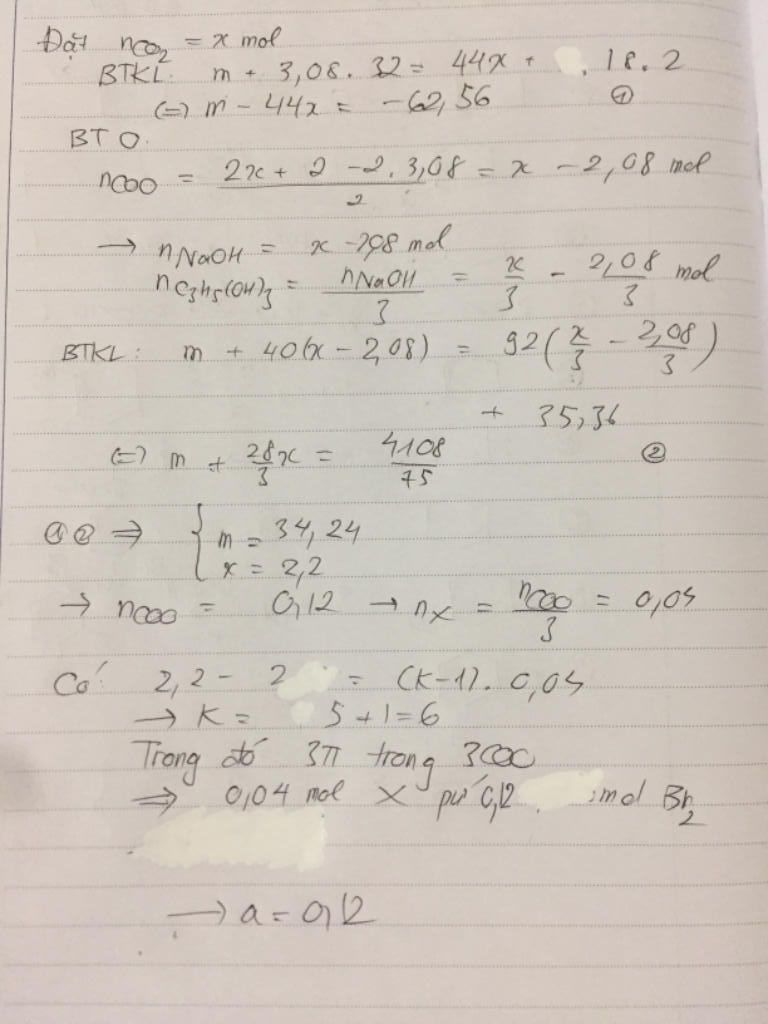 Bảo toàn Oxi: $6b+2.3,08=2{n}_{C{O}_{2}}+2\,\Rightarrow \,\,{n}_{C{{O}_{2}}}=3b+2,08\,\,\left( mol \right)$