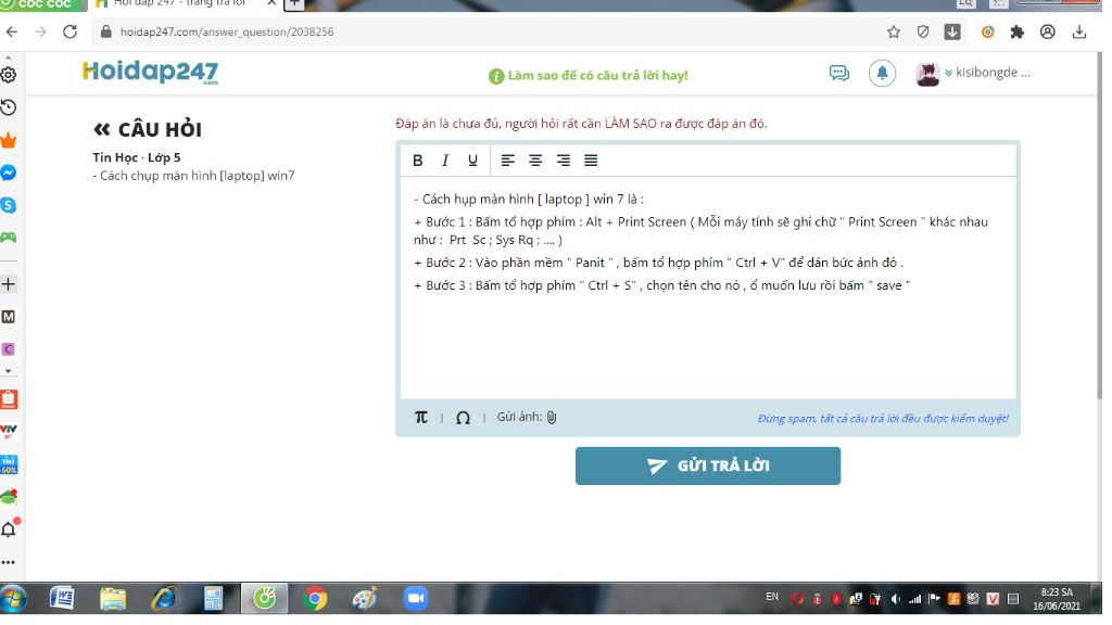 - Cách hụp màn hình [ laptop ] win 7 là :