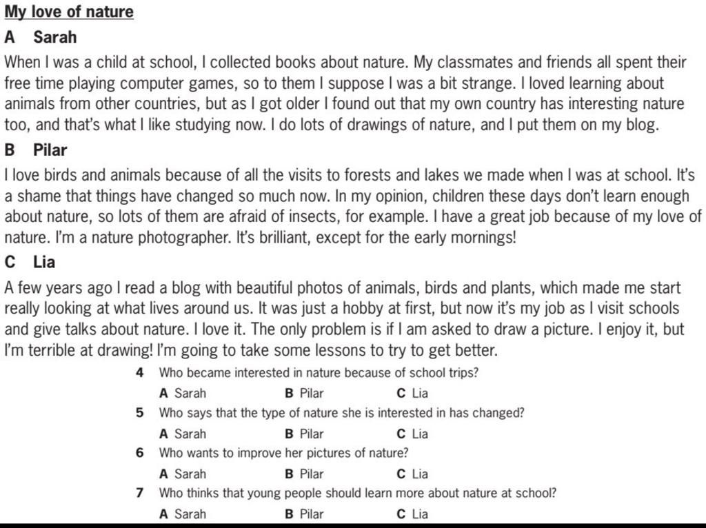 4. C. Lia (I visit school and give talks about nature)