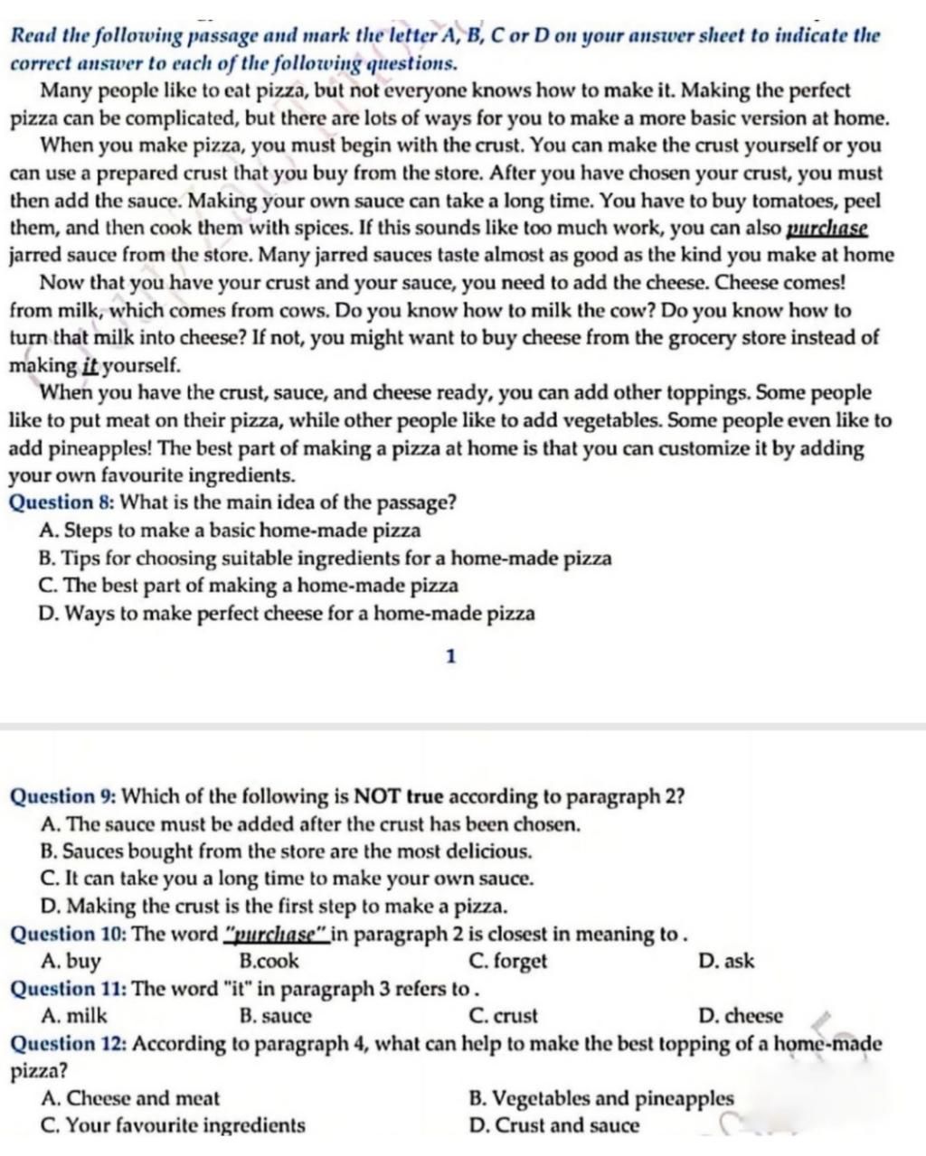 `->` đoạn văn chủ yếu nói đến các bước cơ bản để làm pizza tại nhà