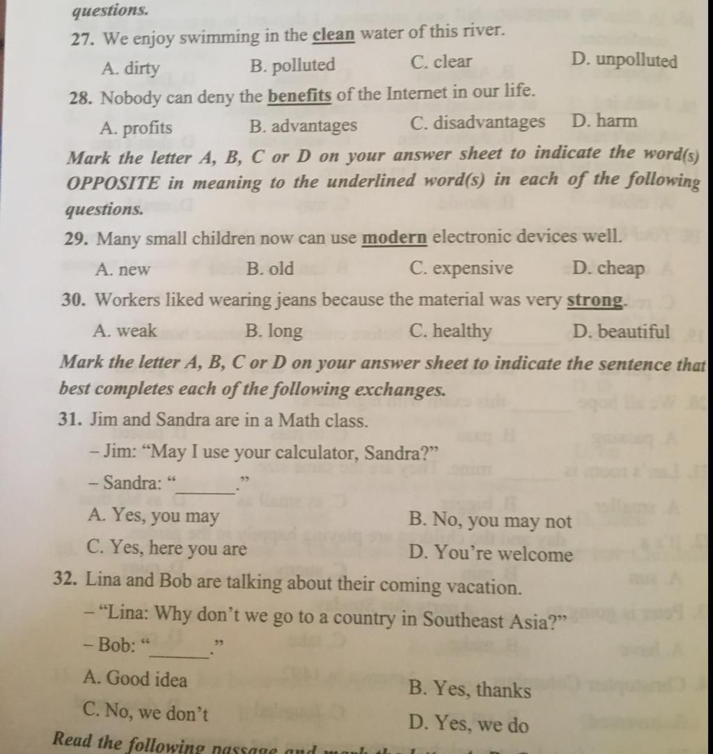 28 B vì advantages cũng mang nghĩa giống với benifits = hay lợi ích