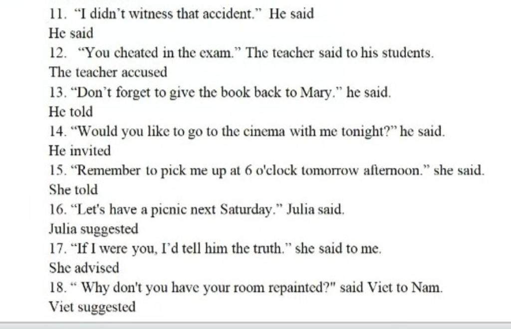 14. He invited me to go to the cinema with him that night.