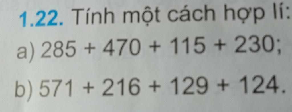 `a) 285 + 470 + 115 + 230`