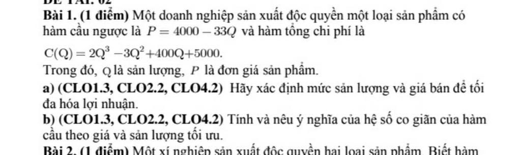 b)\quad \text{Hệ số co giãn của hàm cầu theo giá tại mức sản lượng tối ưu}\\