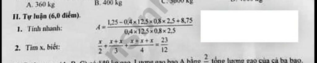 Ta có: A = $\frac{1,25-0,4.12,5.0,8.2,5+8,75}{0,4.12,5.0,8.2,5}$