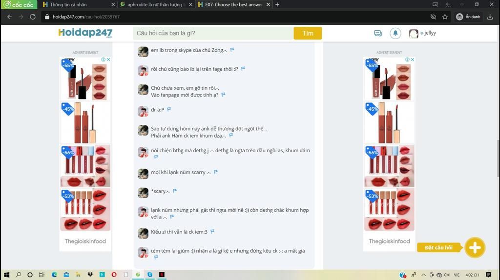 x E aphrodite là nữ thần tượngt x H EX7: Choose the best answe