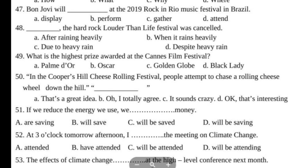 d. Despite heavy rain