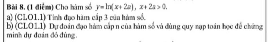 Do đó $y^{(n)} = \dfrac{(-1)^{n-1}(n-1)!}{(x+2a)^n}\quad \forall n\in\Bbb N^*$