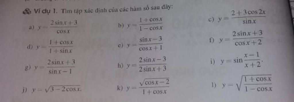 6 Ví dụ 1. Tim tập xác dịnh của các hàm số sau dãy:
