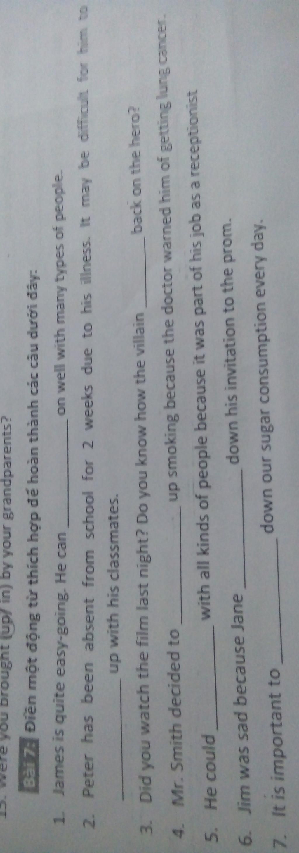 Bài 7: Điền một động từ thích hợp để hoàn thành các câu dưrới đây: