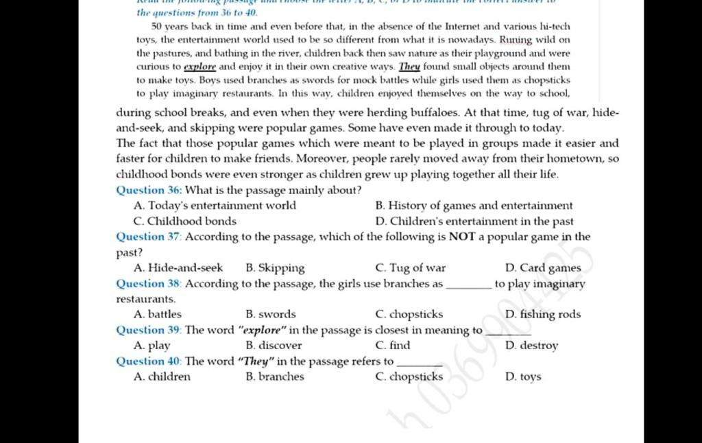 *Dịch: Bài đọc nói về những trò chơi giải trí của trẻ em trong quá khứ.