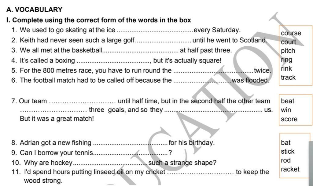1. We used to go skating at the ice ..... rink ............................. every Saturday.