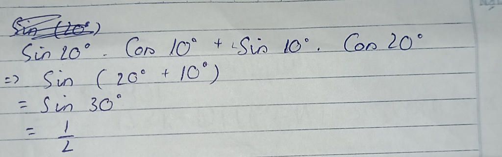 $\sin20^o.\cos10^o+\cos20^o.\sin10^o=\dfrac{1}{2}$