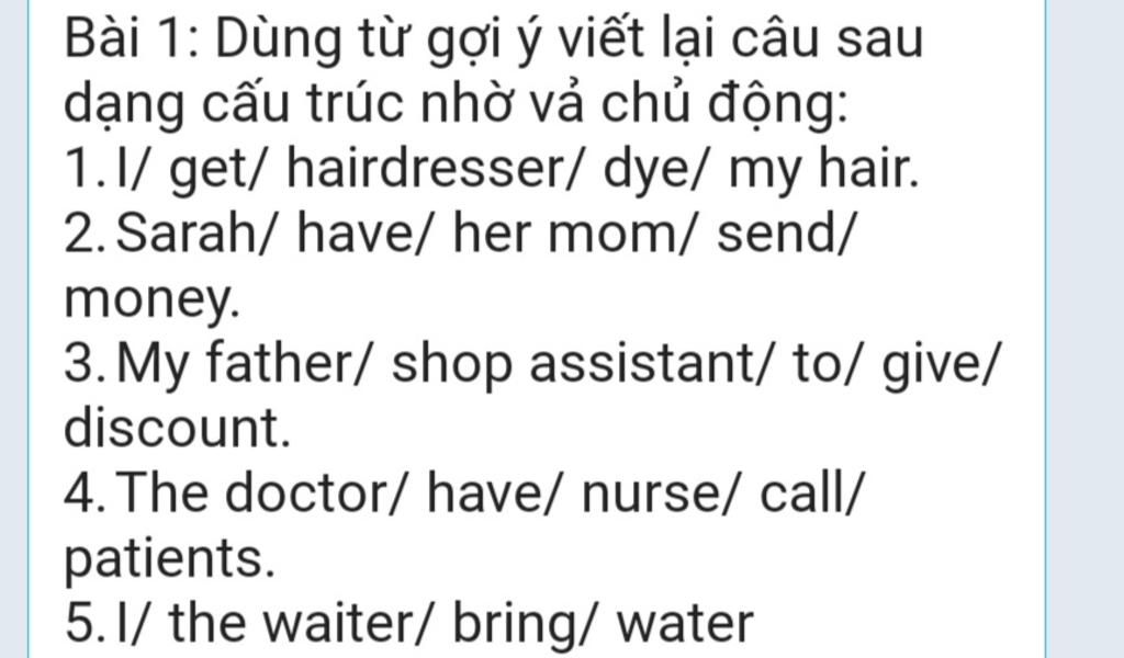 `->` Have sb do sth = Get sb to do sth : có ai đó làm gì ( Cầu khiến )