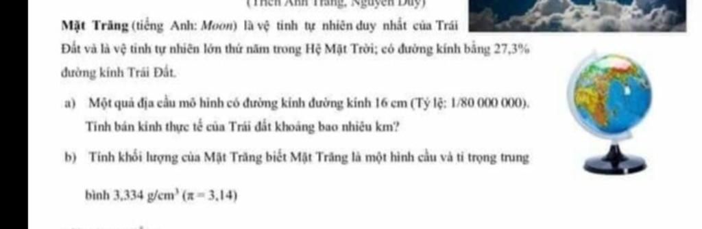 $b)$Bán kính Mặt Trăng: $27,3\%.6400=1747,2(km)$