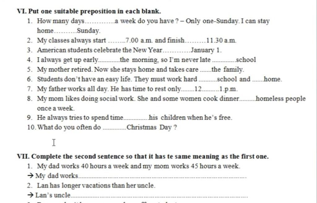 7.My father works all day.He has time to rest only from. 12 to 1.p.m.