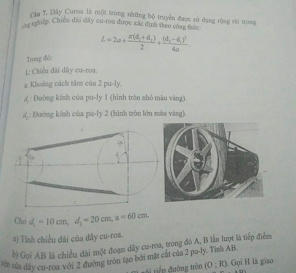 công nghiệp. Chiều dài dây cu-roa được xác định theo công thức: