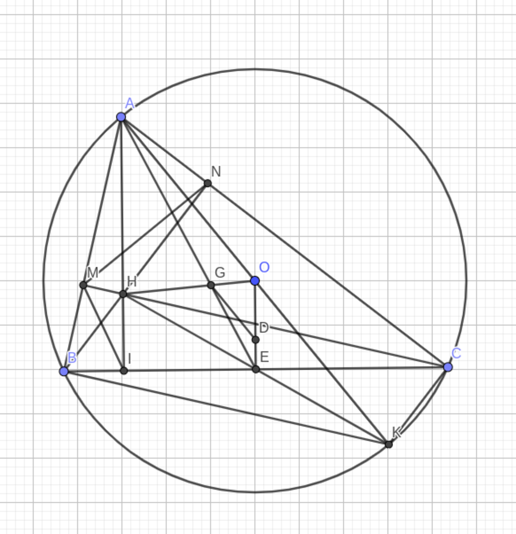 $\Rightarrow OE$ là đường trung bình $\Delta AHK\Rightarrow AH=2OE$