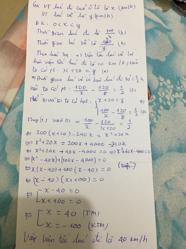 Vì khi từ B trở về A người đó đi đường khác dài hơn đường cũ 20km nhưng với vận tốc lớn hơn vận tốc lúc đi mỗi giờ 20km. vì vậy thời gian về ít hơn thời gian đi là 30 phút= 0,5 giờ