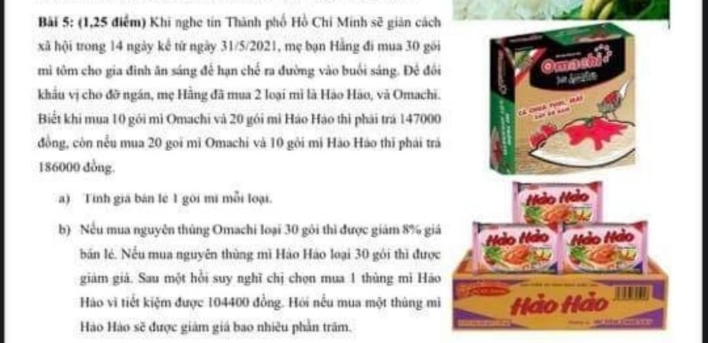 b)Giá của 1 gói mì Omachi sau khi giảm là: 7500.(1-8%)=6900(đồng)