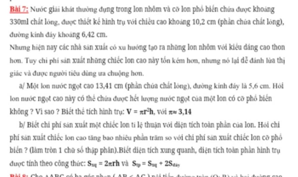 Bán kính đáy lon cao: $\dfrac{5,6}{2}=2,8(cm)$