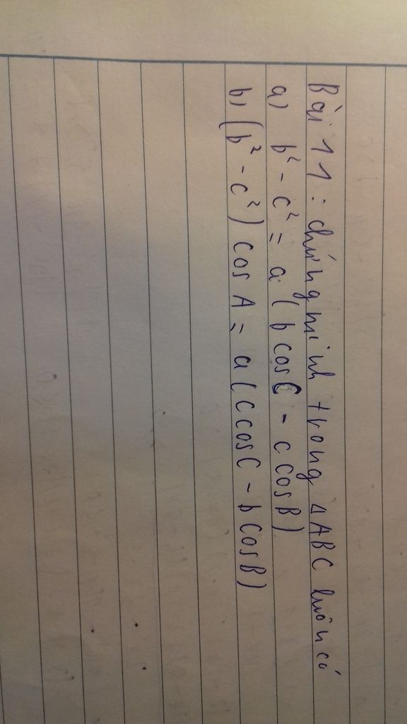 = ab.\dfrac{{{b^2} + {a^2} - {c^2}}}{{2ab}} - ac.\dfrac{{{a^2} + {c^2} - {b^2}}}{{2ac}}\\