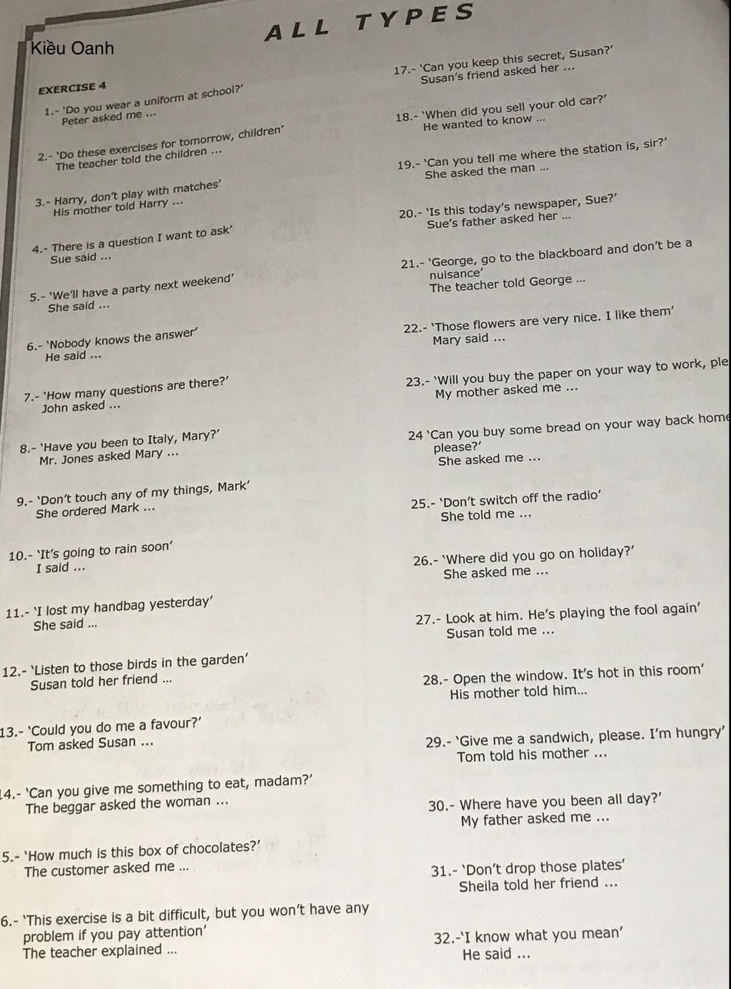 13. Tom asked Susan to do him a favour.