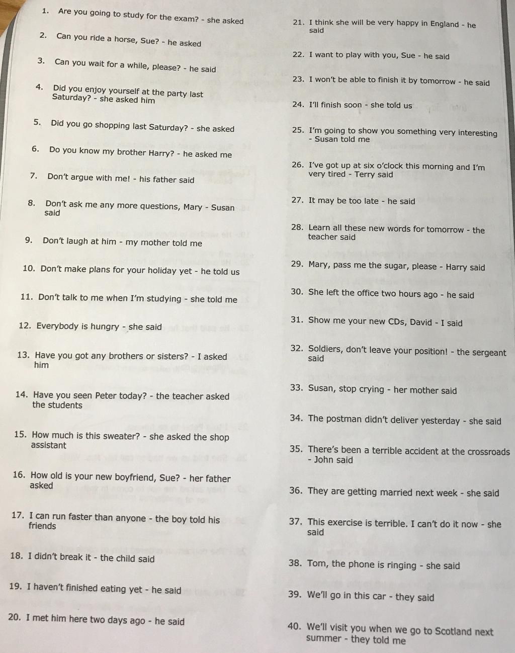 8 Susan asked Mary not to ask her any more questions.