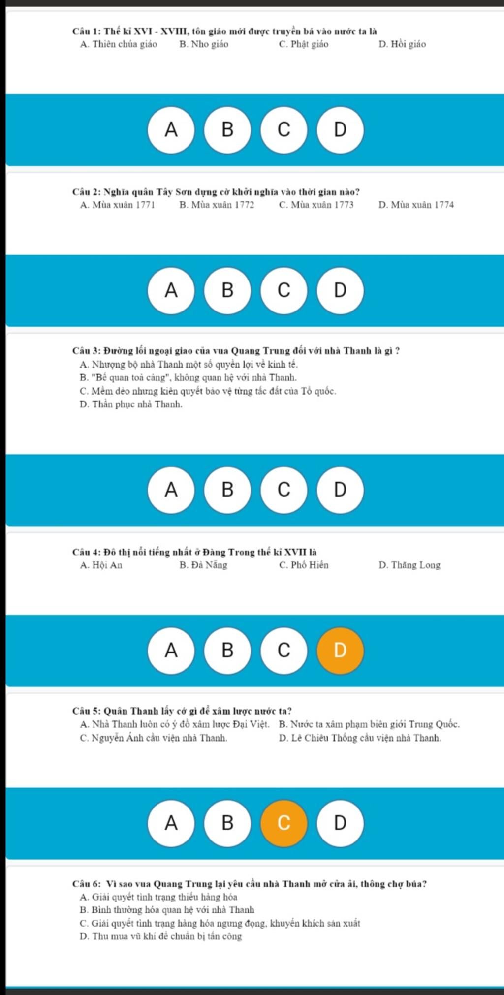 Câu 5:D. Lê Chiêu Thống cầu viện nhà Thanh