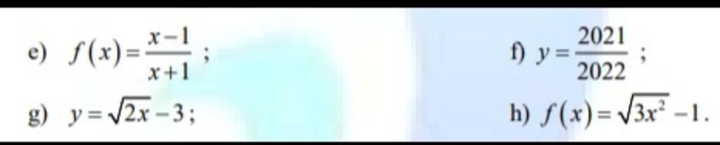 e, Hàm phân thức hữu tỉ (bậc nhất chia bậc nhất) $y=\dfrac{ax+b}{cx+d}$, không có dạng $y=ax+b$