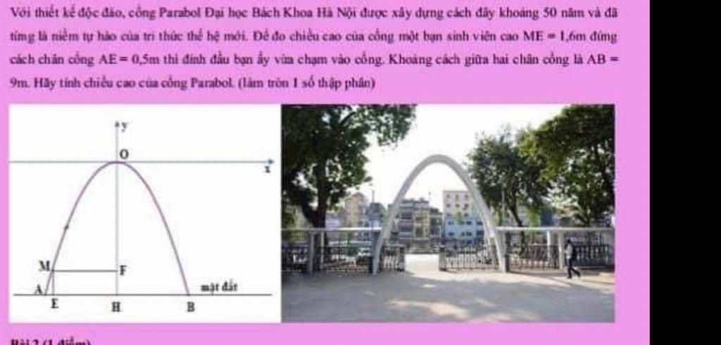 cách chân cống AE=0,5m thi đinh đầu bạn ấy via cham vào cong. Khoáng cách giữa ...