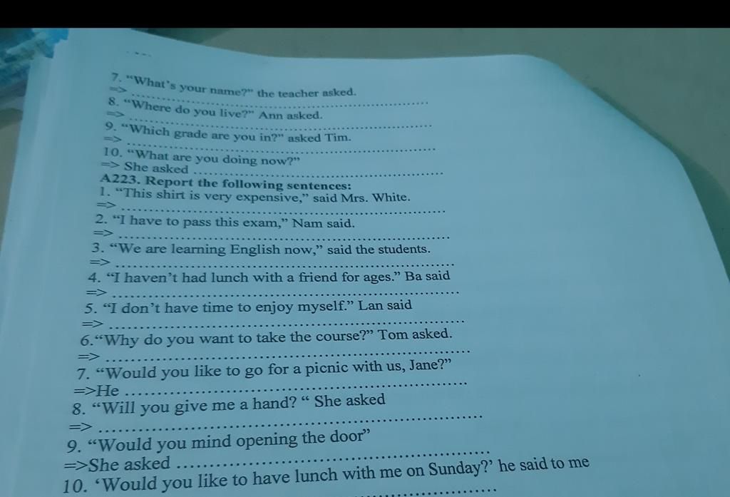 7. The teacher asked me what my name was.
