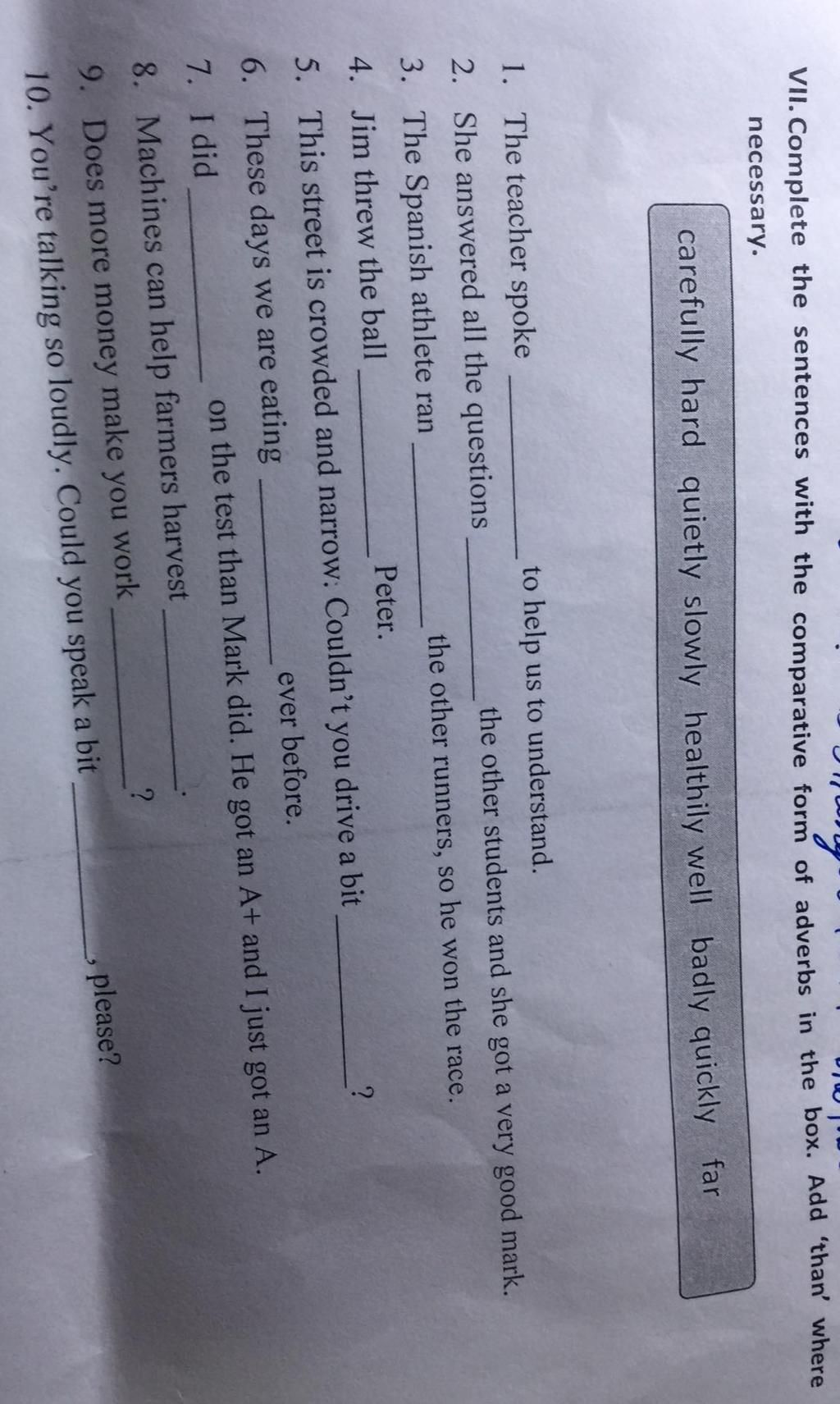 7. I did badly on the test than Mark did. He got an A+ and I just got an A.