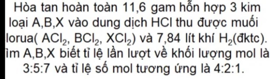 m hỗn hợp = 11.6 => 3b x 4 x 0.05 + 5b x 2 x 0.05 + 7b x 0.05 = 11.6 g