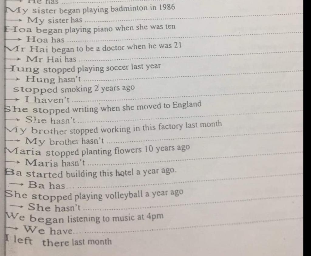 10.=> She hasn't played volleyball for a year.