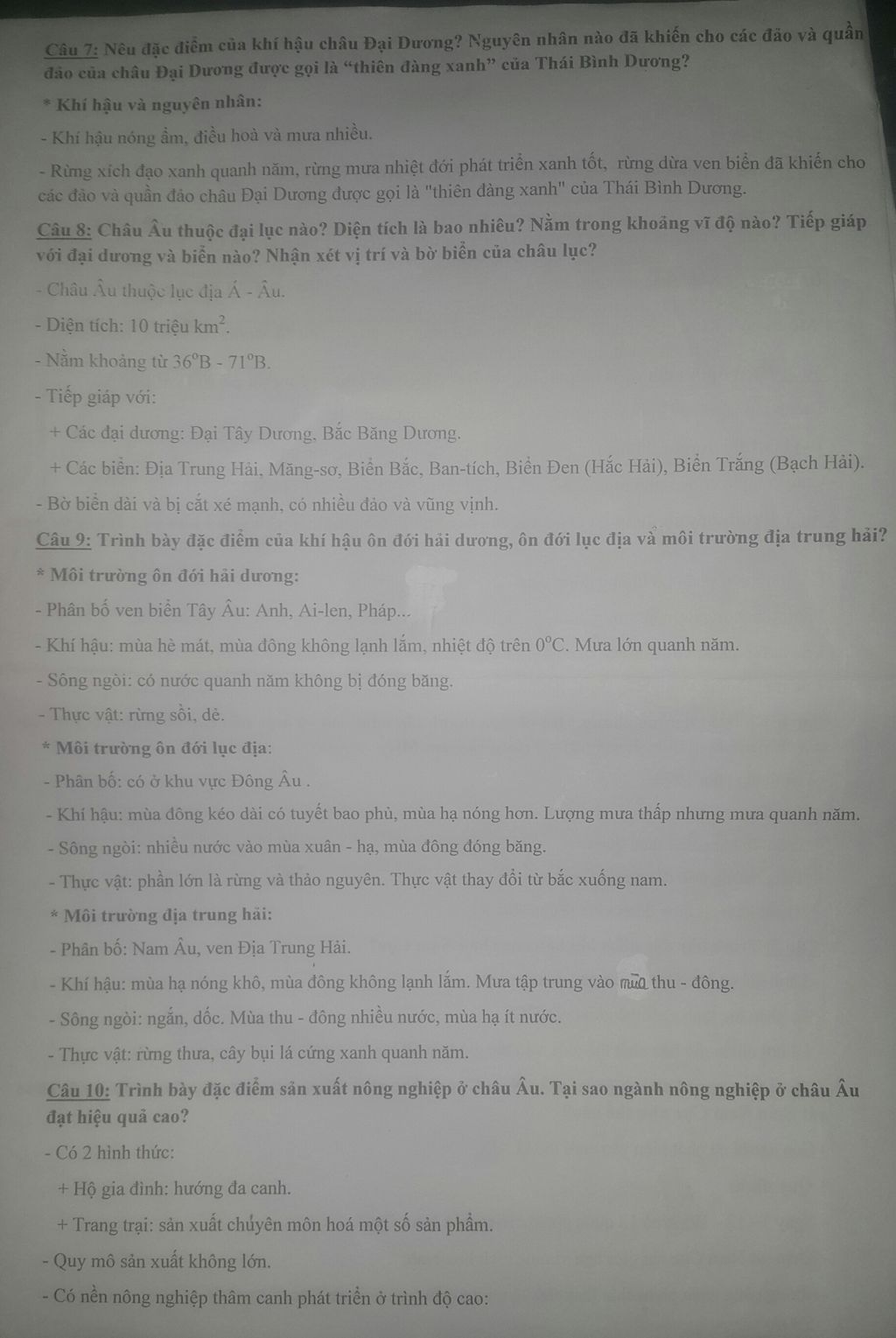 Câu 10: Trình bày đặc điểm sản xuất nông nghiệp ở châu Âu. Tại sao ngành nông nghiệp ở châu Âu đạt hiệu quả cao ?