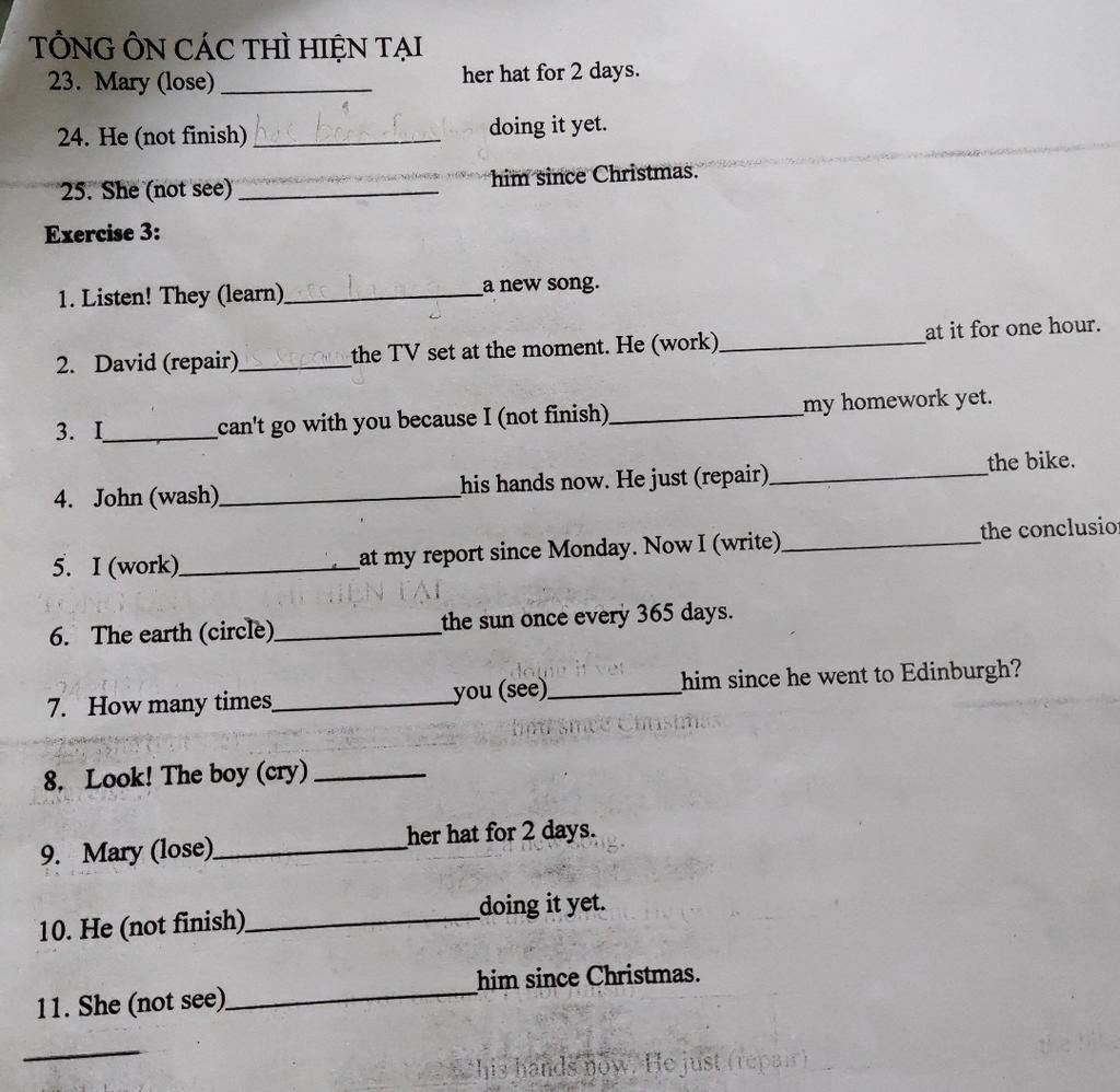 `=>` Thì hiện tại tiếp diễn - hiện tại hoàn thành.