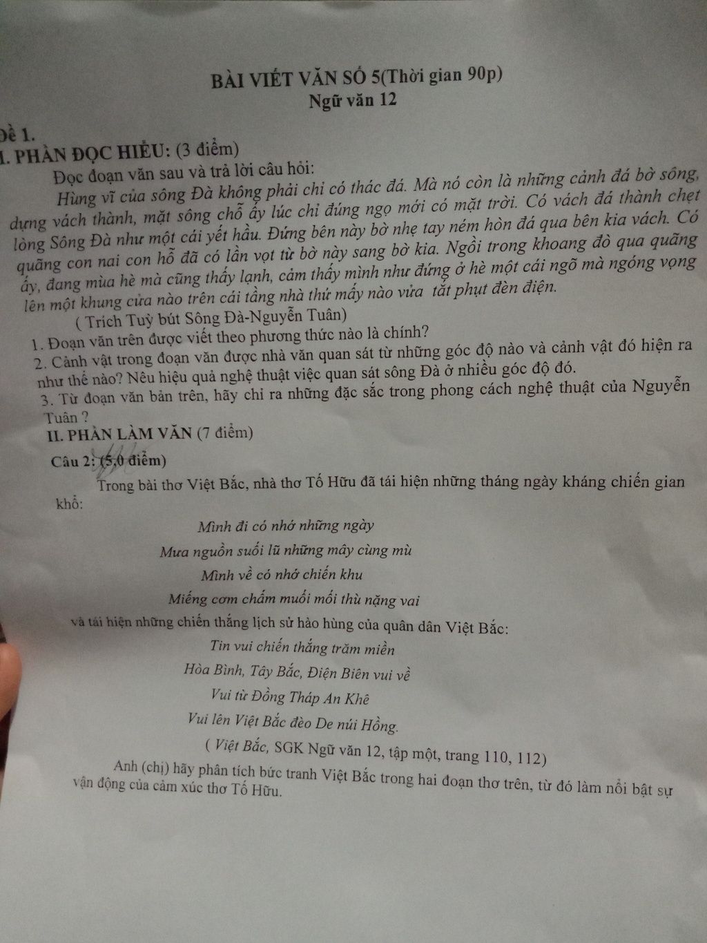 1.Đoạn văn trên được viết theo PTBĐ chính là: Miêu tả