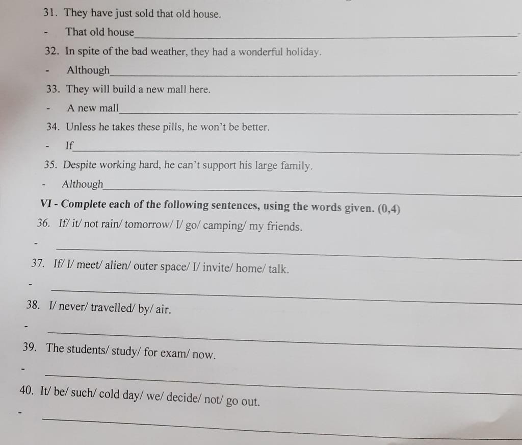 36. If it does not rain tomorrow, I will go camping with my friends