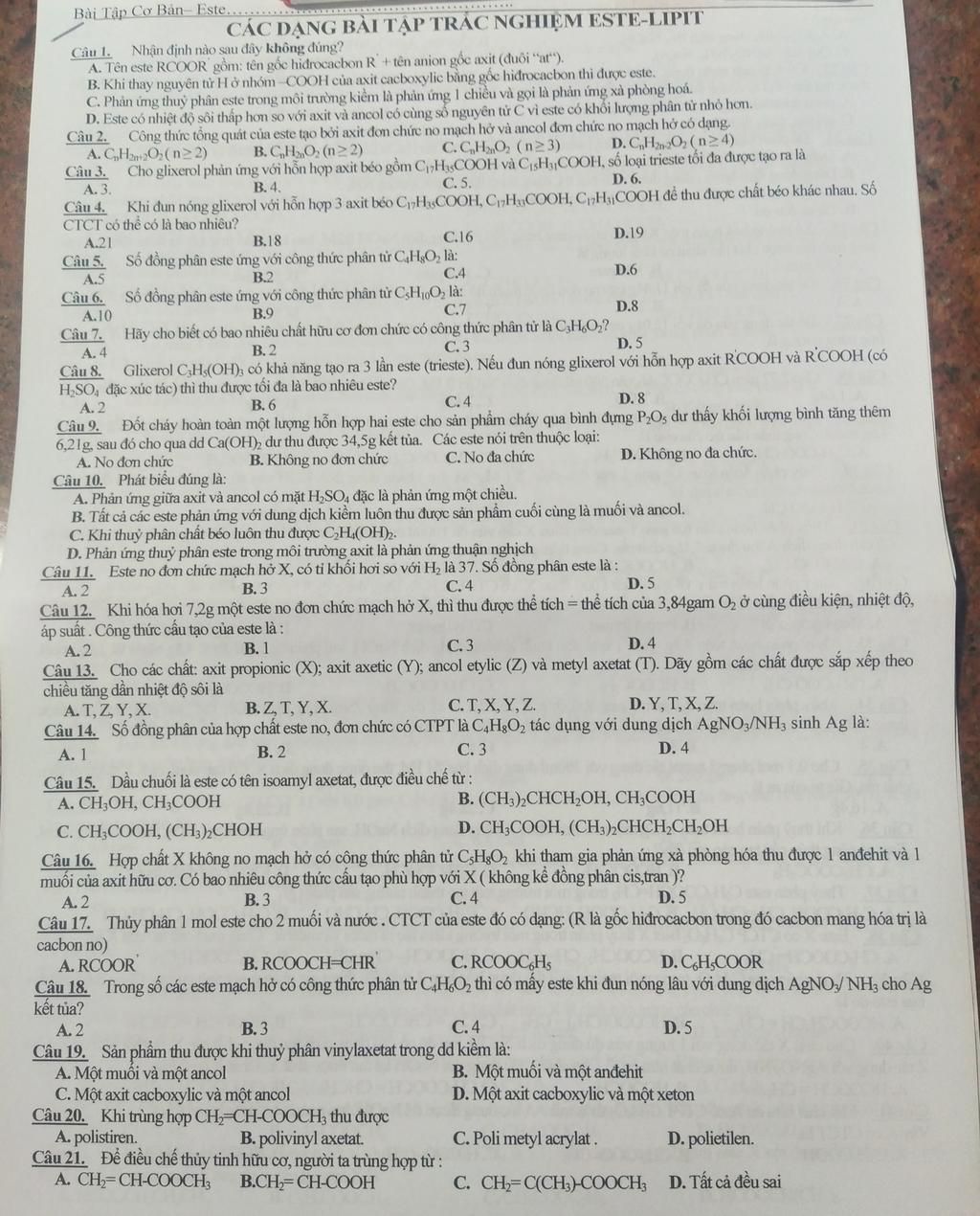 Bài Tập Cơ Bản Este..........o