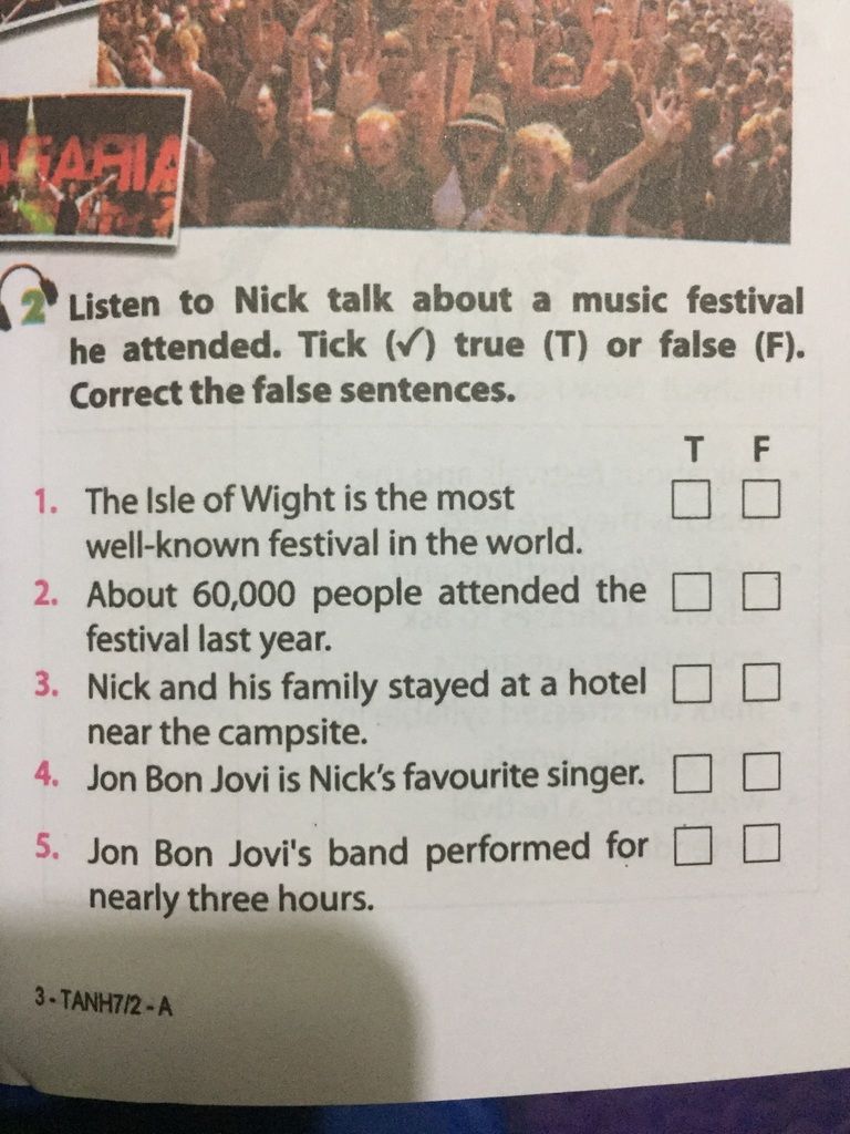 he attended. Tick () true (T) or false (F).