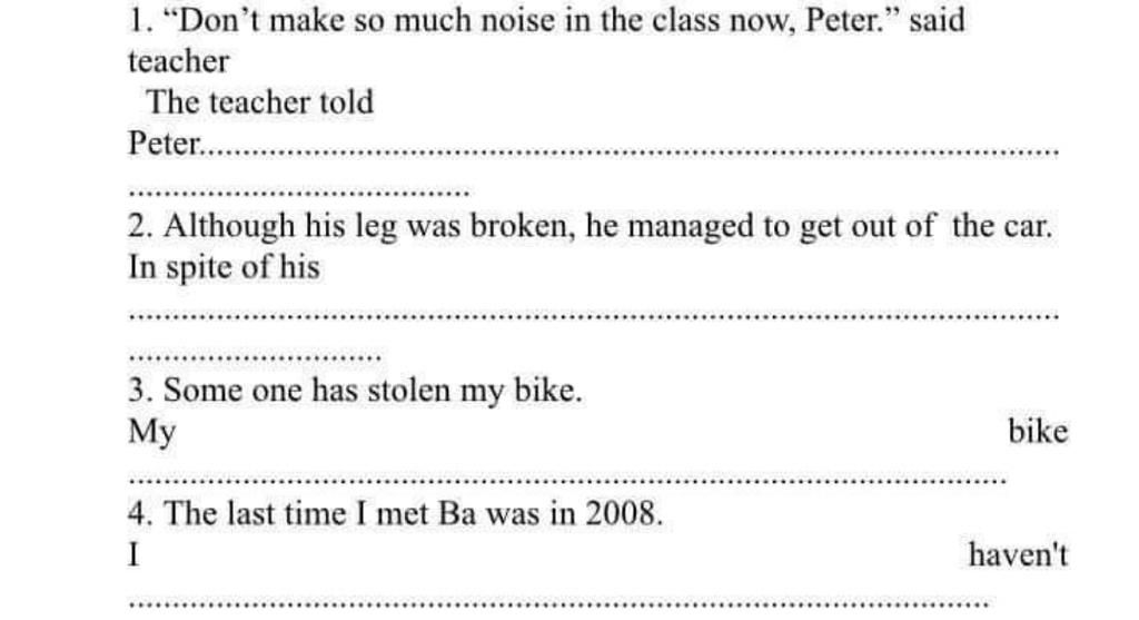 1 The teacher told Peter not to make so much noise in the class then.