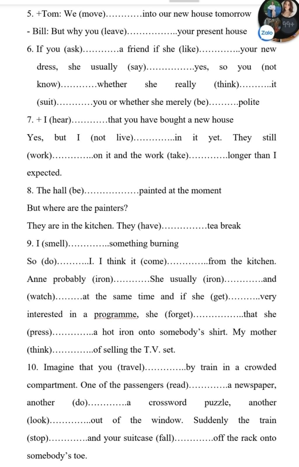9. smell - do - comes - is ironing - irons - watches - gets - will forget - is pressing - is thinking