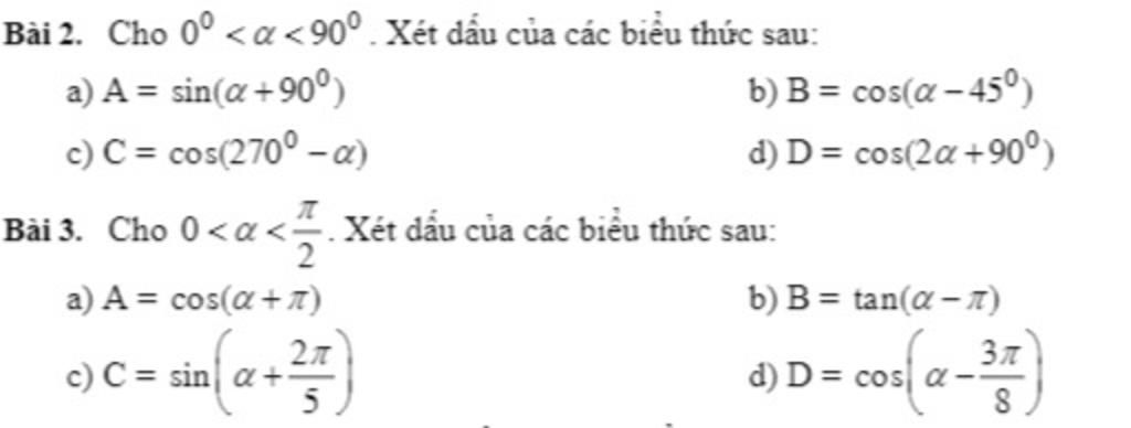 Ta có $0°<\alpha<90°$