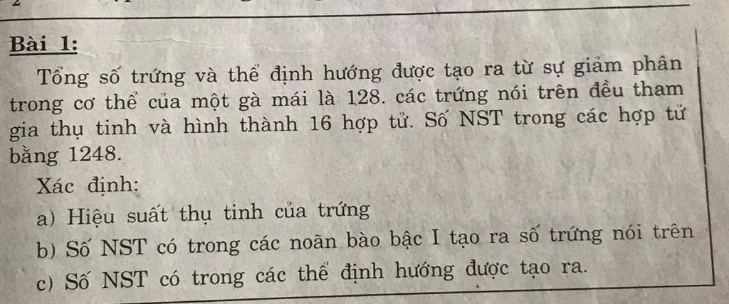 b) số NST có trong noãn bào bậc 1 nói trên là