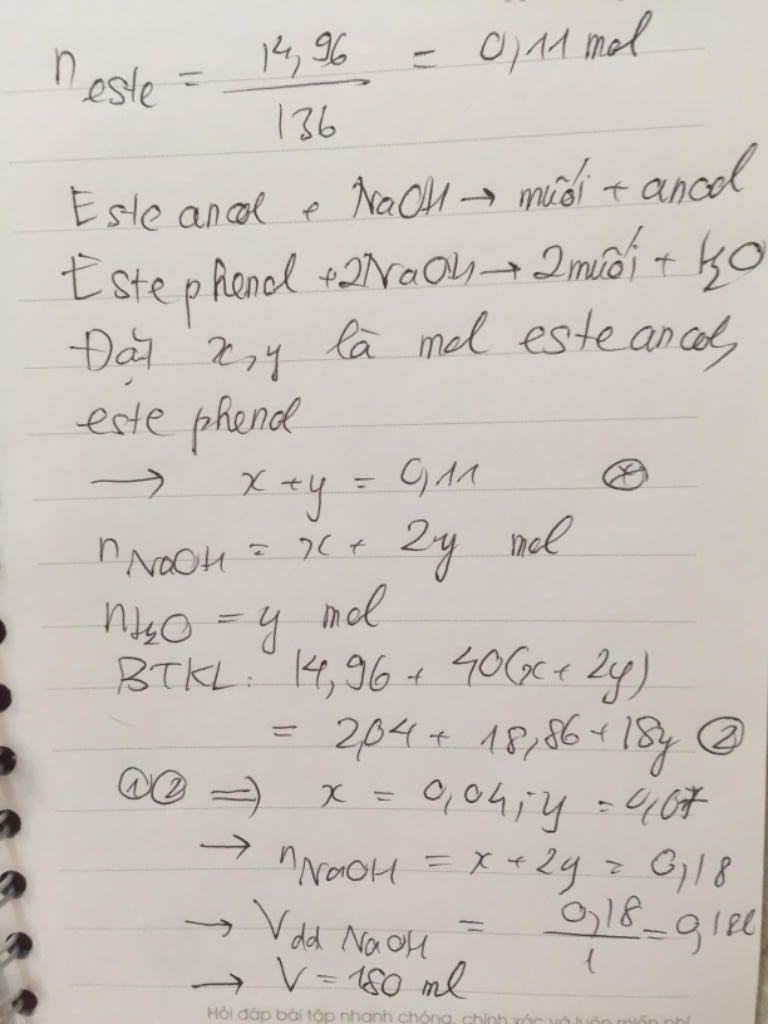 b, $CH_3-OOC-COO-C_6H_5$: este hai chức, 1 $COO$ gắn trực tiếp với vòng benzen $\to +NaOH 1:3$