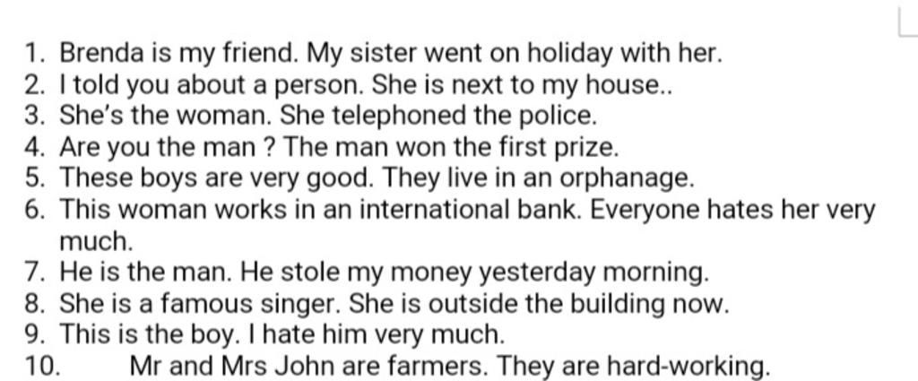 10. Mr and Mrs.John, who are hard-working, are farmers.