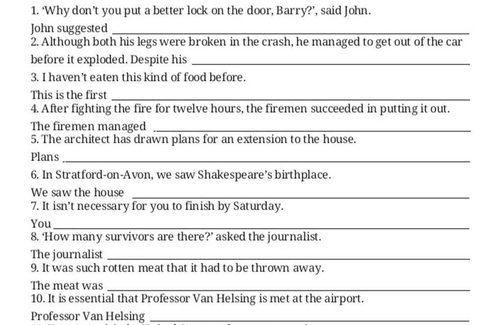 1. John suggested that Barry should put a better lock on the door. (suggest S should V)